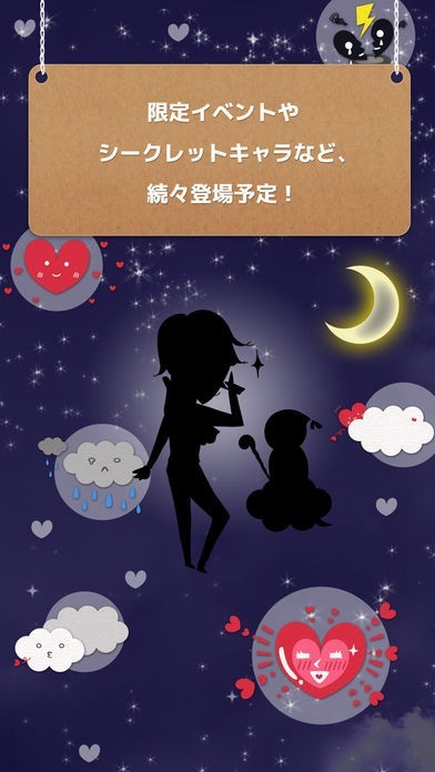 あなたのモテ度によって、空やハートのイラストが変化するよ。時間によって夕焼や星空を楽しめます。