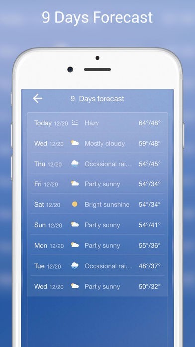 9日間の天気予報を確認することが出来る