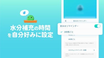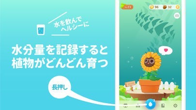 『植物ナニー²』はあなた毎日の水分補給をしっかりサポートします。水分量を記録すると植物が一緒にどんどん育つ!毎日、植物の育ち具合を見るのを楽しみましょう!