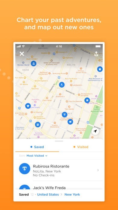 お気に入りの飲食店や実際に行った観光地の写真やコメントと共に地図上でピン表示してくれます。それまでの旅の記録を手軽に残すことができます。あとで見返して思い出に浸ったり友人に紹介する時にも利用できます。