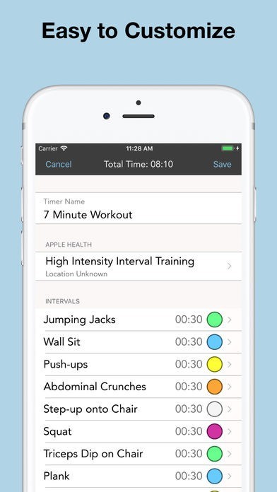 • Customize the Name, Duration, Alert, and Color for each interval in your timer