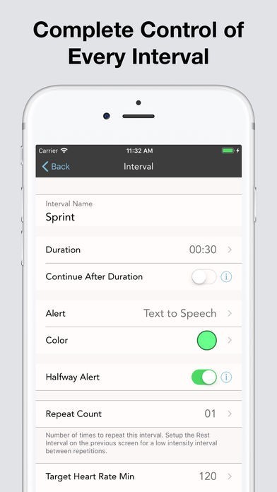 • Configurable haptic alert countdown that taps you on the wrist when the interval is ending