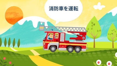 子供に人気の消防車をテーマに簡単操作でさまざまなコンテンツで遊べる