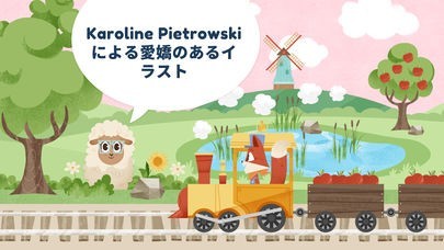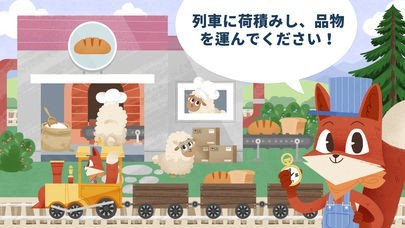 メインキャラクターは列車に乗ったキツネで、このほかの動物も登場します。また、果物や野菜といった原料、パンや衣類などの加工品も登場しますので、名称の学習と加工による変化の仕組みを子どもに教えてみるのも良いでしょう。