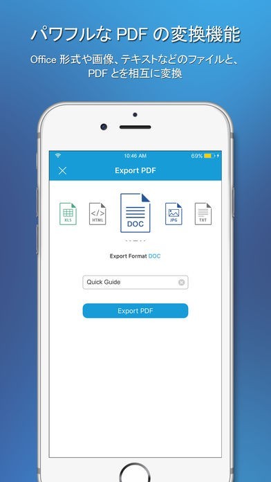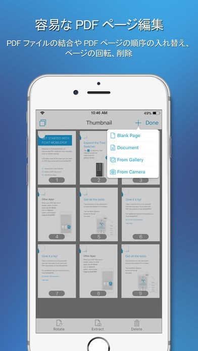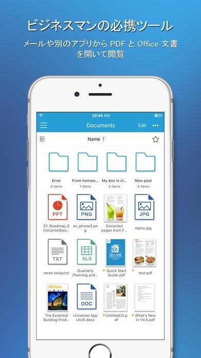 App Storeより引用Foxit MobilePDF Business は外出先でも iOS デバイスで PDF を閲覧し、注釈の追加やセキュリティ設定ができる使いやすいビジネス対応の PDF リーダーです。