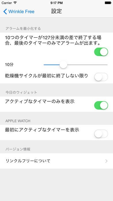 App Storeより引用これ以外のランドリータイマーは必要ありません。冗談抜きです。本当です。リンクルフリーで次のことができます: