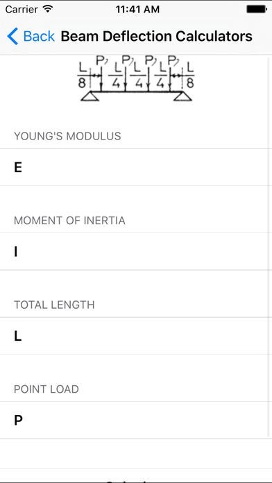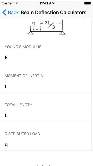 App Storeより引用このアプリは、58梁構造のためのたわみとたわみ角を算出します。応用力がポイント、分散型または回転することができます。ビームは、一方の端部に端部又は可撓性の両方を固定することができます。