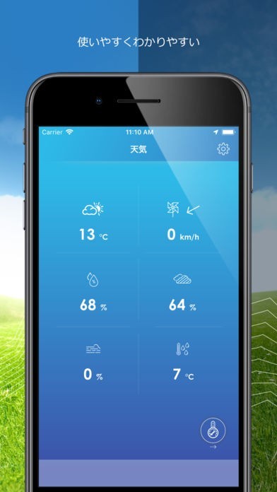 アプリには色んなお天気の情報が掲載されています。天気、湿度、風速、温度などが1つの画面に表示されます。詳細な天気をチェックできるので、アウトドアやレジャーに役立つでしょう。