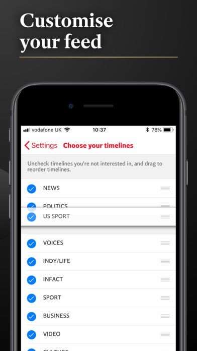 Features: News, Voices, politics, long reads, business, tech, lifestyle, sport, travel, fashion & beauty, food, money, health, science, film, music, books, art, theatre, shopping, obituaries, crossword, codeword, sudoku.