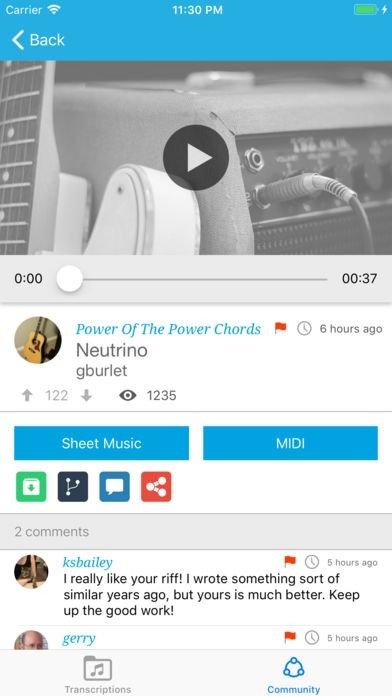 • Collaborate with musicians around the world to tweak and improve your songs and contribute to other's songs.