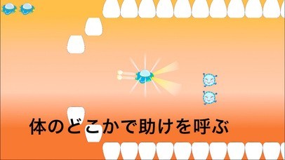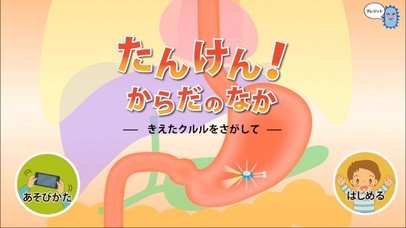 人間の体内に迷い込んだ愛犬を見つけるために、スーパーノヴァ号に乗って探検していくゲームです。口から入って食道を通り、胃、腸と進んでいくので、食べ物を消化する過程を学ぶことができます。登場する敵キャラクターは実際にいるバイキンがモチーフになっています。薬剤師が監修しているので、バイキンの姿は特徴を捉えたリアルなものになっていてイメージしやすいです。操作はスマホを傾けてバイキンなどを避けていくだけなので子どもでも簡単に操作でき、空き時間に親子で人体の勉強をしながら楽しく遊ぶことができます。バイキンを知ることで手洗いやうがいなどの重要性も分かります。