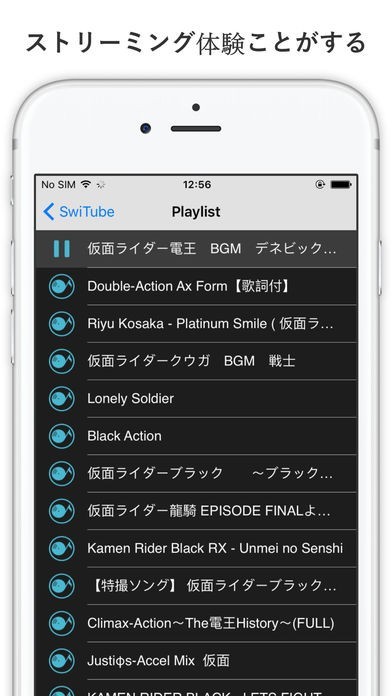 仮面ライダーシリーズの歌や曲をスワイプジェスチャーでストリーミングすることができます