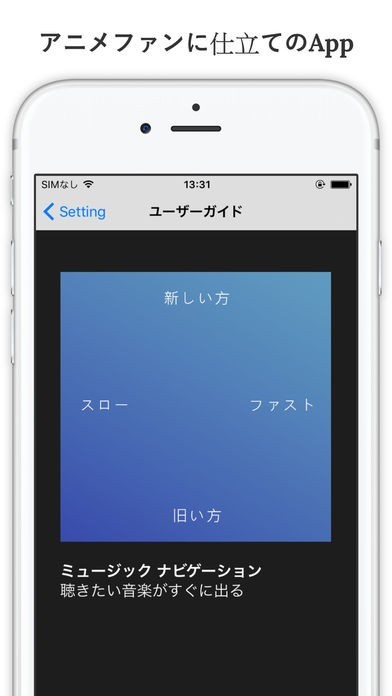 - スワイプジェスチャーでガンダムの音楽の視覚分類や音楽放送の種類を調整します