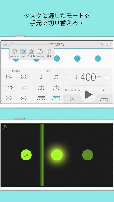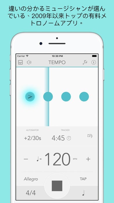 「Tempo - Metronome メトロノーム」は、スマートフォンで正確なメトロノーム機能を利用することができるアプリで、10から800のテンポレンジを選択できます。