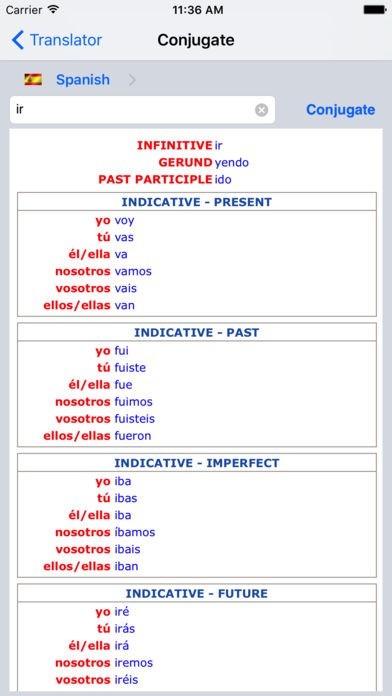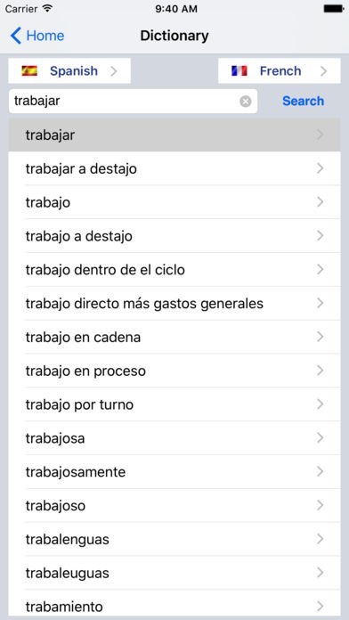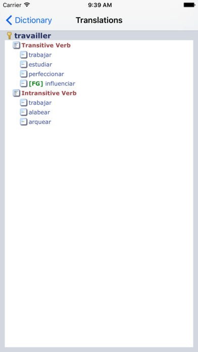 App Storeより引用No importa a dónde vayas, nunca te quedarás sin palabras. Con esta app, puedes traducir más de 100,000 palabras y frases del español al francés y del francés al español y conjugar verbos en cinco idiomas diferentes, mientras te desplazas de un lugar a otro. Ideal para estudiantes de idiomas en la escuela, el trabajo, la casa o mientras estás de viaje. No necesita conexión a Internet.