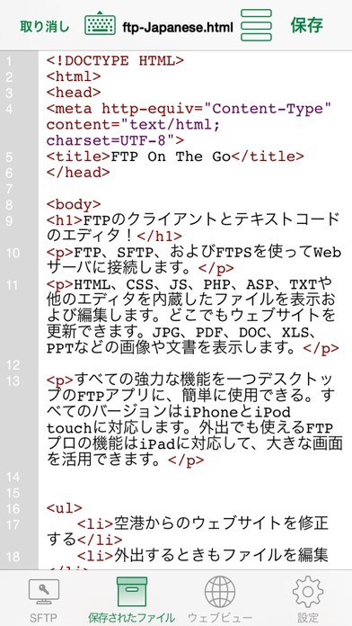 すべてのバージョンがiPhoneとiPod touchに対応しており、特にiPodでアプリを起動すると大画面でまるでパソコンの画面に匹敵する大きさでテキストコードを打つことができます。