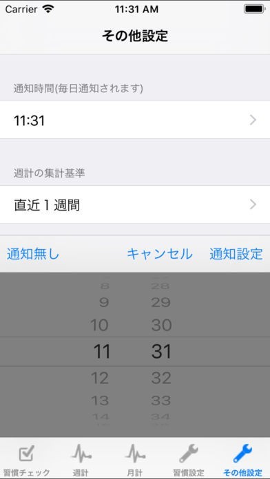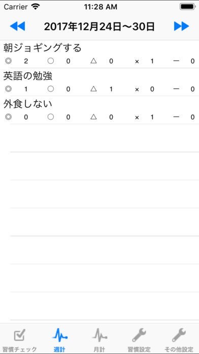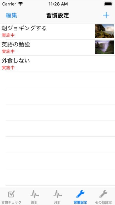 習慣チェックのスクリーンショット