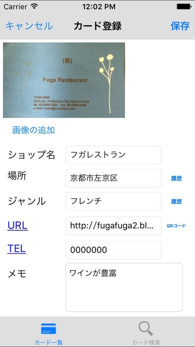 レストランなどでもらうカード登録!お店の住所やジャンルを一括管理!