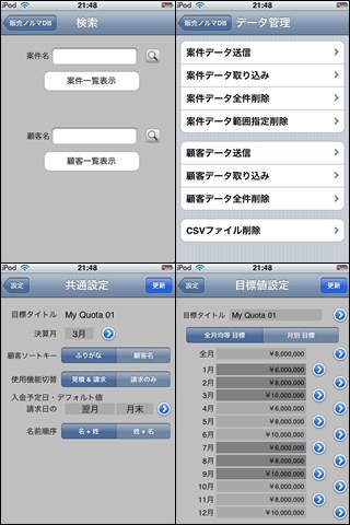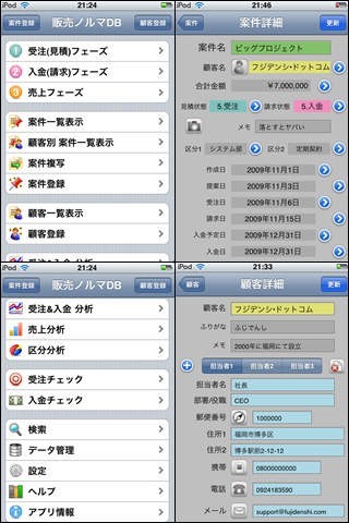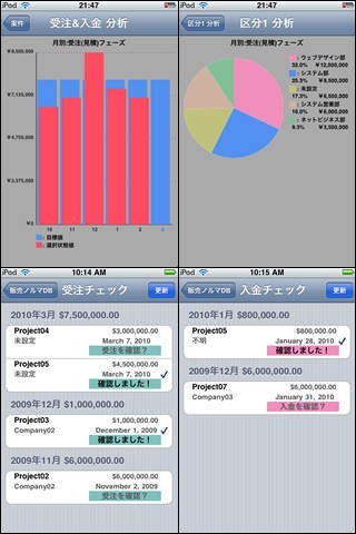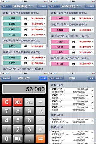 このアプリは、営業マン向けのアプリです。様々な案件をノルマ管理することができます。案件の状態と、達成度、またその顧客情報を連携する事ができます。