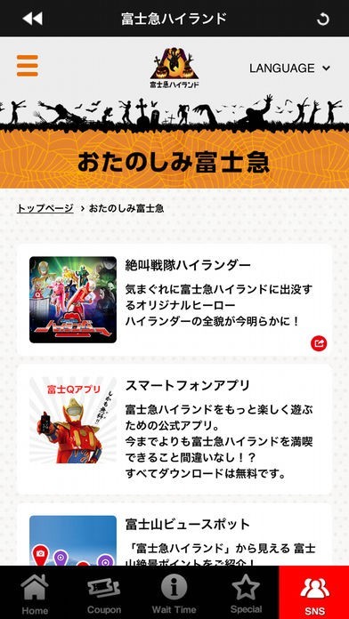 富士急ハイランドの公式アプリでアトラクションの地図なども用意