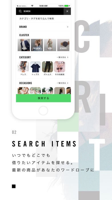 商品はブランドやカテゴリーごとに分類されていて簡単に検索できるので、レンタルしたい商品をすぐに選べます。最新の商品がそろっているので、トレンドに乗り遅れることもありません。