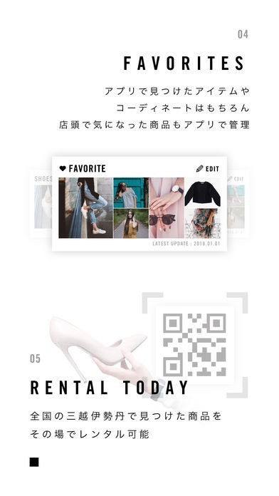 銀座三越に来店して商品を実際に見てみて気に入ったなら、その場でタグについているQRコードを読み取るだけで登録しておけるので、レンタルしたい時に手軽に注文できます。