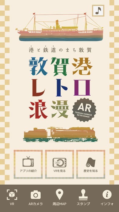 App Storeより引用敦賀港は古くより大陸を結ぶ交易拠点として栄えてきました。また、明治から昭和初期には日本と欧州を最短で結ぶ欧亜国際連絡列車の発着地となるなど、交通の要路として発展を遂げてきました。 本アプリは魅力的で活気あふれる「港と鉄道のまち敦賀」を観光スポットで訪れた際に楽しんでいただくための観光行動支援アプリケーションです。敦賀港の周辺エリアにてアプリをお使いいだくと昭和初期の街並みを再現したエリアが目の前に広がります。