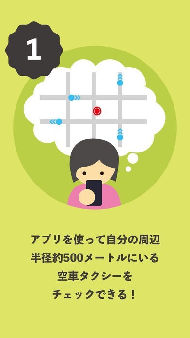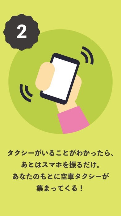 コンセプトはタクシーとのゆるーいマッチング!スマホを振ってタクシーコール!