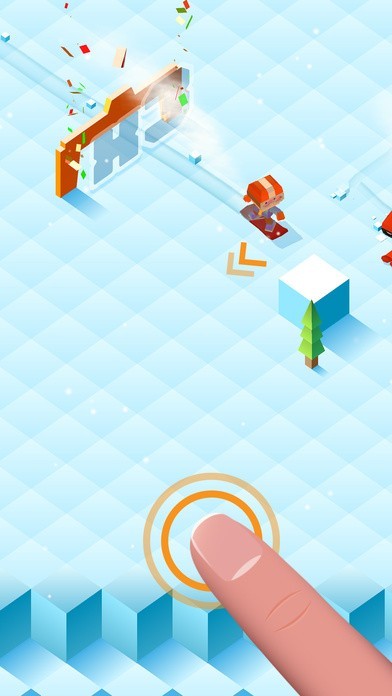ブロックで表現されたペンギンや雪だるまを操ってスノーボードを楽しむことができる!