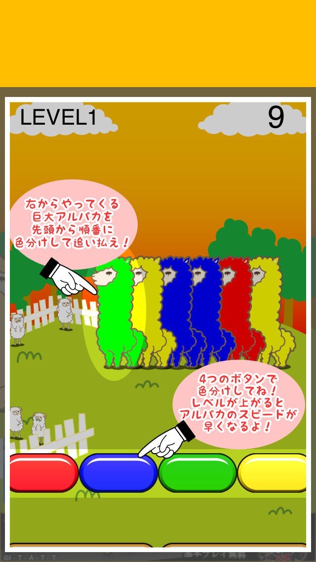 次々と流れてくるカラフルなアルパカを色ごとに仕分けしていくシンプルなゲームです。可愛いアルパカのイラストが癒されます。無心になって仕分けをしていくうちについつい夢中になっちゃうかも。
