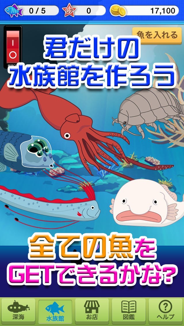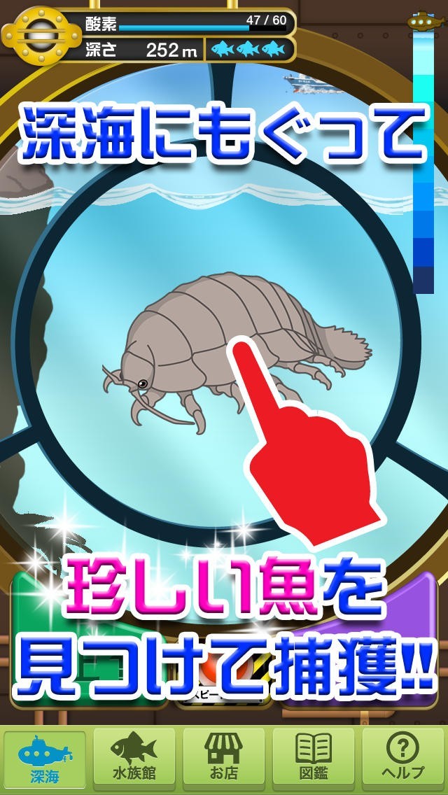 「僕の深海水族館 - 潜って捕って暇つぶし!深海魚放置系ゲーム -」は深海魚を集めて、自分だけの・自分好みの深海水族館が作れる放置系ゲームです。メジャーな深海魚から誰もが驚くレアな深海魚まで取り揃っており、レアな深海魚をGETするとお客様からお金がもらえる!お金を貯めて設備を拡張し、更に魚を捕って水族館を作っていきます。自分で深海に潜って魚を捕獲するところから始めるので、とても楽しい!魚を探しに行く潜水艦もやり込むほど設備強化でき、飽きません。全種類の深海魚を調達できるのか挑戦するのも楽しいですよ。