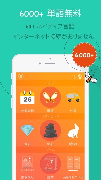 6,000種類以上の英単語が収録されていて、オフライン環境で英語が勉強出来るようになっています。7つのゲームが用意されているので、楽しみながら単語を学習する事が可能ですね。