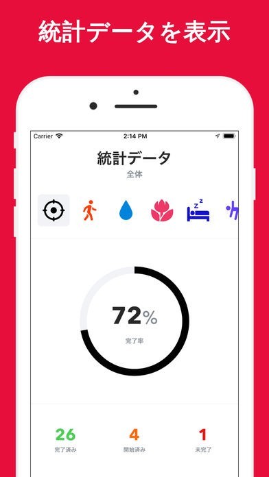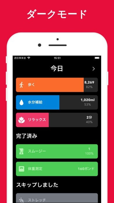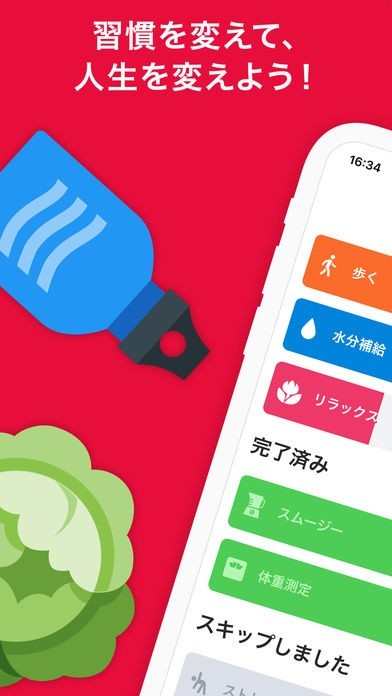 このアプリには、あらかじめ用意された50個ものポジティブ且つ健康的な習慣があるので、自分で健康的な習慣を見つけるのが難しい時などには、とても参考になるはずです。