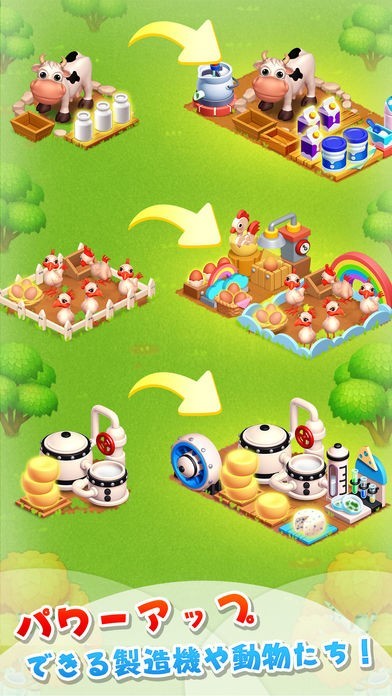 様々な動物や穀物を育てながら牧場を大きくする牧場運営シュミレーションゲームです。牧場で育てられるのは牛や豚、また蜂を飼育しハチミツを採取することもできます。植物は野菜から穀物、クローバーまで動物を飼育する上で必要なものがたくさんあります。育てられる動物や植物はプレイヤーランクを上げることでどんどん増えていくので、やり進めるほどに面白くなっていきます。牧場に設置するパン工場や製造器を好きな箇所に置いてオリジナルな牧場を作り上げることができます。