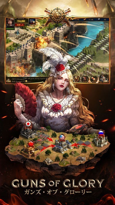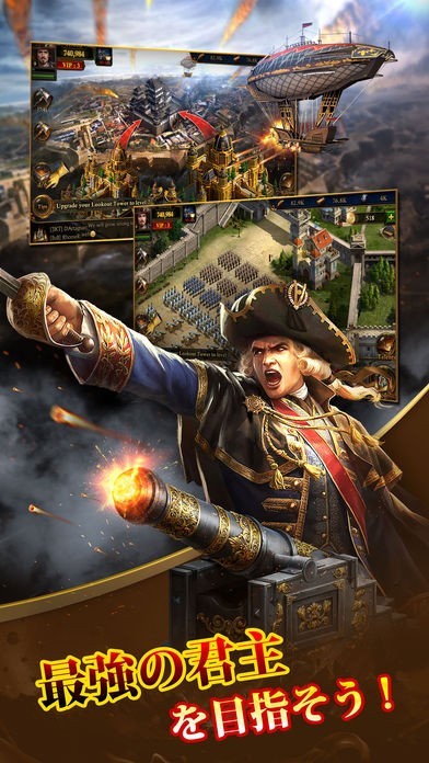 君主となって自国を強国へと導いていくMMOストラテジーゲームアプリが「ガンズ・オブ・グローリー (Guns of Glory)」です。世界中のプレイヤーたちと切磋琢磨して自国を育てていくことが出来るようになっていて、自動チャット翻訳機能によって世界中のプレイヤーとスムーズにコミュニケーションをとることが出来るゲームとなっています。城下町や装備などを自由にカスタマイズして思い通りの国にすることができます。