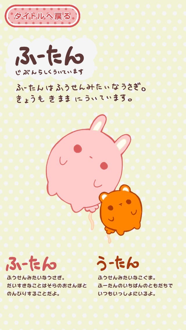「ふーたん」と「うーたん」の可愛いキャラクターが登場、簡単操作と程よいステージ数で、お子様から大人まで楽しめる仕様が魅力