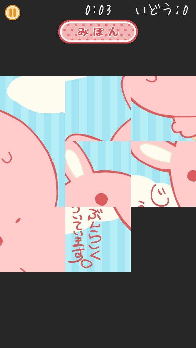 バラバラに並んだピースを組み立てて絵を完成していくスライドパズル、ステージは7つ収録され、可愛いキャラクターが魅力