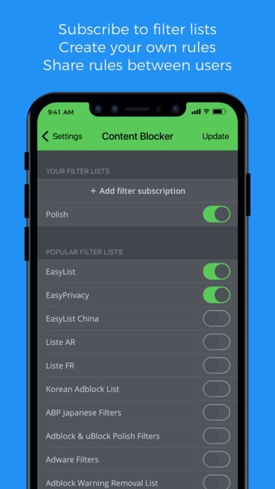 不要なコンテンツだけでなく、デバイスのインターネットアクセスを追跡するトラッカーをブロックする機能も搭載されているので、どんなコンテンツを見ているかを詮索されることもなくプライバシーが守れます。もちろん「AdBlock」自身が取得した情報を悪用することもありません。