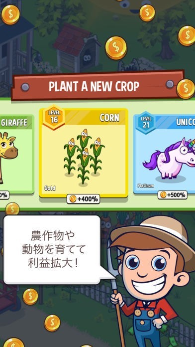 農作物を作る楽しさをスマホでいつでも体感することができる、Idle Farming Empire