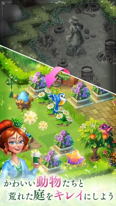 マージガーデン(Merge Gardens)の荒れ果てたこのお庭をマージとマッチ3の力で綺麗にし、ミステリー&パズルゲームで他にはない体験をしよう!
