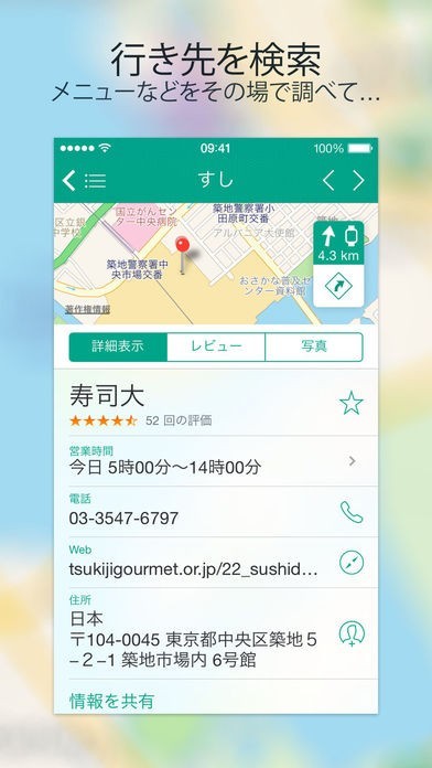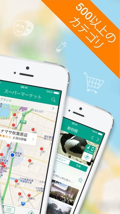 500以上のカテゴリの中からお店や観光スポットなどを検索できるガイドブックのようなアプリです。飲食店ではメニューを調べることもできるので、近所で初めて訪れるお店を探すのにもオススメです。