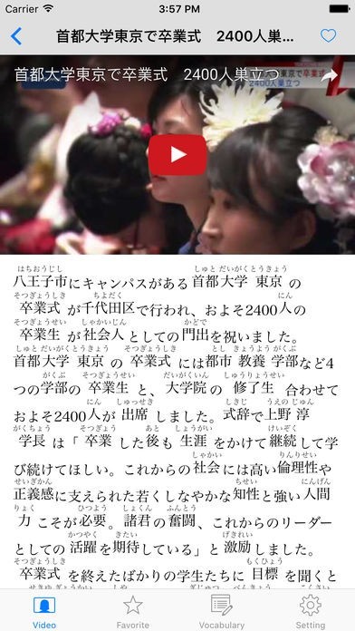 日本のニュースを画像とナレーション、漢字読書ガイド、語彙リスト付きで見られる!日本語の勉強にピッタリ
