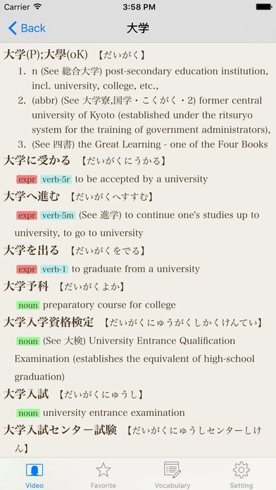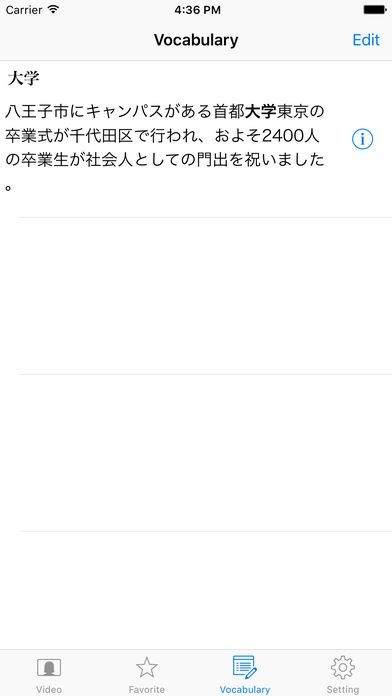 ニュース内で流れた気になる言葉は、アプリ内の辞書で詳しく調べ、その場で理解できるように作られています。また、個人的な語彙リストが作れるので、覚えておきたい言葉はどんどん語彙リストに載せていくと語彙力アップに繋がります。