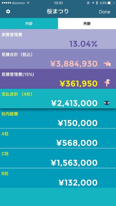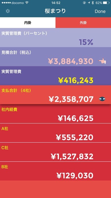 アプリを使ってプロジェクトごとにデータ保存しましょう。それぞれの見積額や仕入れ額を記録しておくことができます。プロジェクトの振り返りにも使うことができるでしょう。
