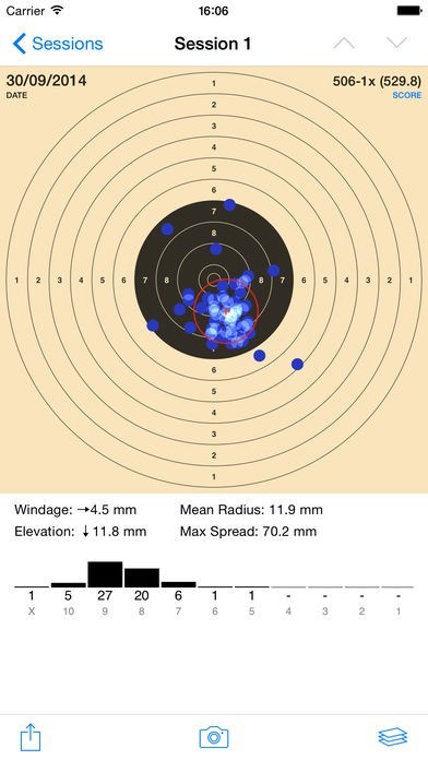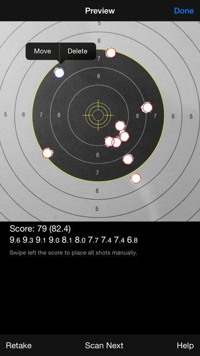 射撃の練習をしたあと、弾を撃ちこんだターゲットをスマートフォンのカメラ機能でスキャンすることでその内容を記録し、外れている弾や命中率について具体的に分析することができます。