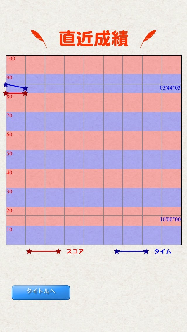 プレイした直近10回分の成績は、得点とクリアまでにかかった時間の変化をグラフで見ることができます