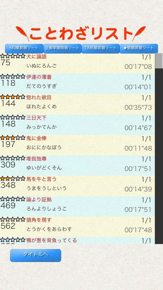 ●ことわざごとにプレイ結果を記録