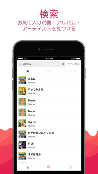 曲名を入力して直接楽曲を見つけることはもちろん、イメージやアーティスト名からも検索することが可能です。無料で聞くことができるので、お試し感覚で様々な楽曲が楽しめます。
