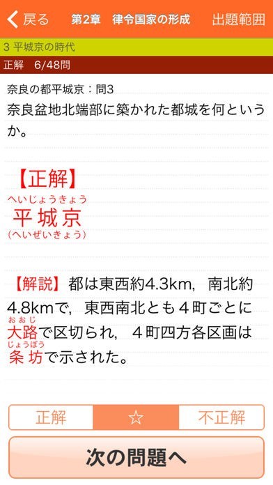 答えだけではなく、分かりやすい解説が付いていることにより、分からない問題もしっかり理解しながら学習を進める事が出来るようになっています。特に日本史が苦手な人には便利な機能となっています。