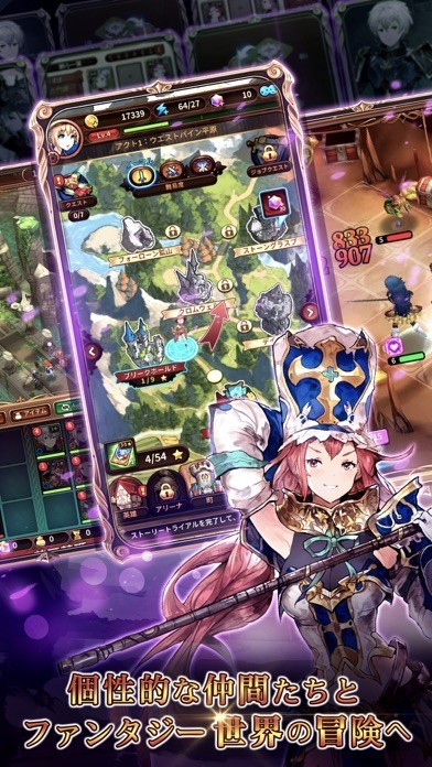 町を作り、チーム強化に必要な建物を建設し、お気に入りのキャラクターをレベルアップさせて自分だけの最強パーティーを作り上げていく本格RPGです。ルーンシステムと呼ばれるキャラクター強化方法やオーラシステムでメンバーが協力して発動するスキルなどを上手く活用して強敵を倒していく痛快バトルを体感しましょう。